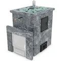 - Талькомагнезит. Схож с талькохлоритом внешним видом и способностью накапливать тепло. Но всё же имеет ряд отличий. Он более прочен, отличается особым рисунком и структурой, выдерживает нагрев до высоких температур — 1500°C. Банная печь, облицованная этим материалом, генерирует мелкодисперсный пар в парилке.